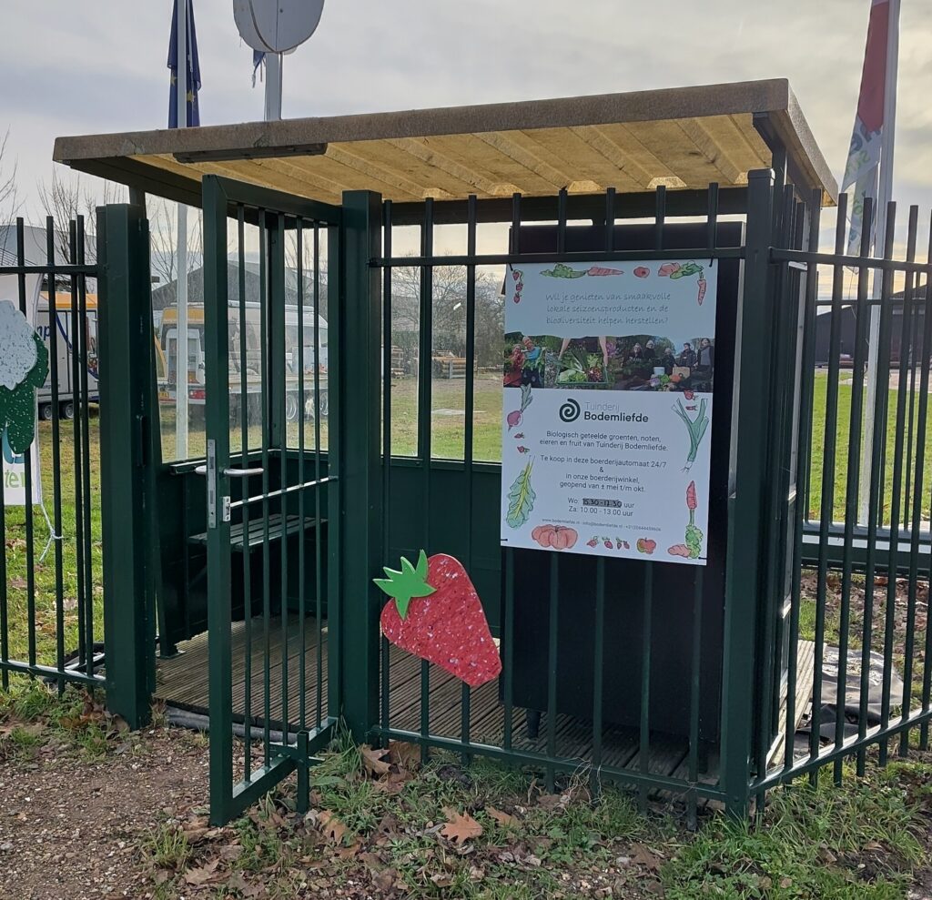 Het hele jaar door, dus ook in de winter, is de verkoopautomaat naast de ingang van Bodemliefde open om producten af te halen.Β